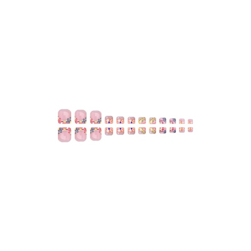 - 【Packing Included】24Pcs Press on toe nails contains 24 pieces full cover reusable acrylic glue on toenails, 24 pieces adhesive nail jelly stickers, 1*mini nail file, and 1*wooden stick.(Durability of jelly glue is not as good as liquid glue, but it makes fake nails reusable.)