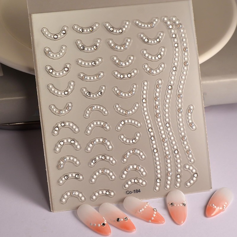 - French Tips Nail Art Stickers: You will get the 1 sheets white pearl nail stickers. Many pattern for you to choose, perfect for women and girls, exquisite nail design, DIY fashion nail.