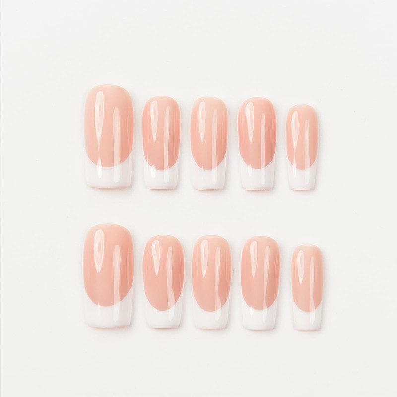 French Tips Square Short Press on Nails, Glossy Nude Short Square False Nails, French Natural Gel Manicure, Art Acrylic Fake Nails Stick on Nails, Nails for Summer (White Deep Round, M)