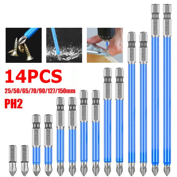 Frentaly 7~14X Magnetic screwdriver bit Bits set PH2 Anti-slip Hex Shank Screw Cross Head - 14PCS Magnetic BIt Set