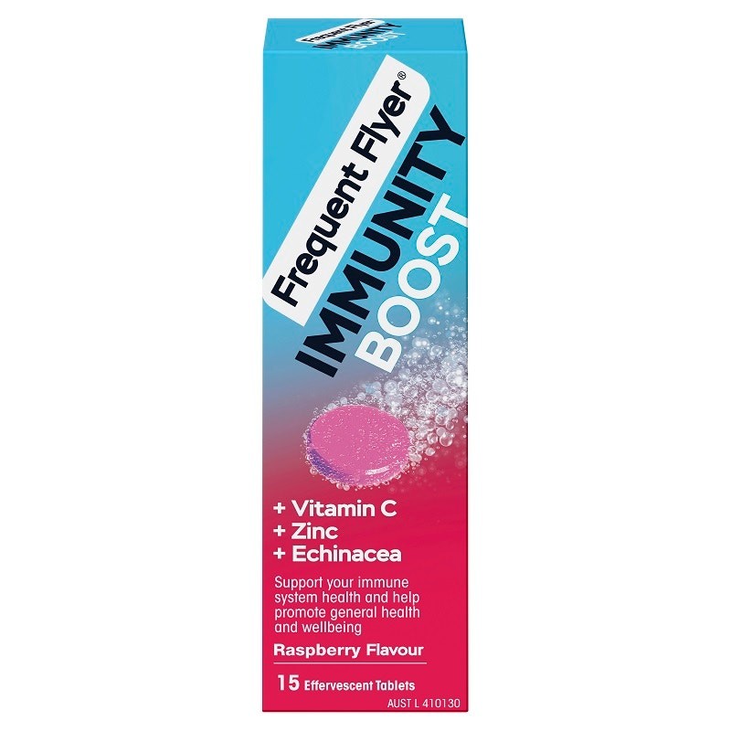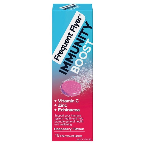 Frequent Flyer Immunity Boost Raspberry Flavoured Effervescent Tablets help support your immune system and help promote general health and well-being with 1000mg of Vitamin C, Zinc, Echinacea, and beneficial herbs and minerals.