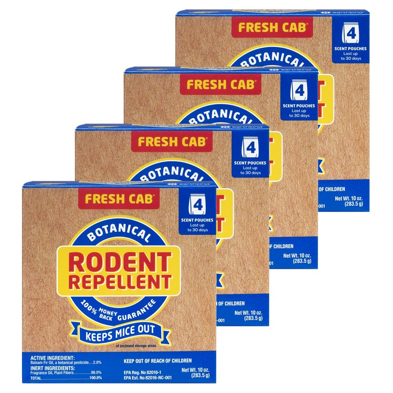 - FAST ACTING - Fresh Cab keeps mice out! For preventative use in non-infested areas, simply place one pouch for every 125 square feet. Made with balsam fir oil, this non-toxic plant-based alternative freshens and protects our storage areas for up to 90 days