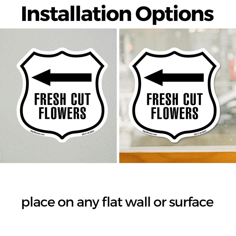 Fresh Cut Flowers Shop Left (2 Pack) 18 inch X 18 inch Shield Shaped Heavy Duty 3.2 mil Vinyl Decals Weather Resistant Made in the USA