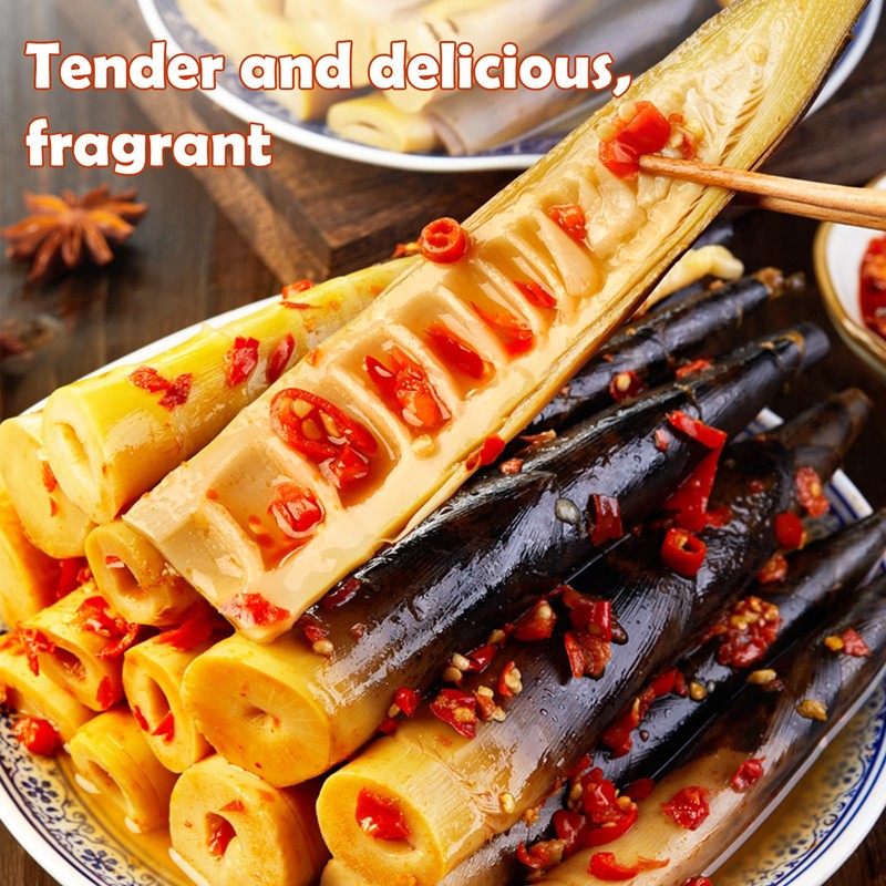 - TENDER AND JUICY:choose the freshest bamboo shoots with the secret material juice, so that you can leave a fragrance in your mouth, crisp and refreshing, the bamboo shoots are crisp and tender, the shell is thin and the inside is thick