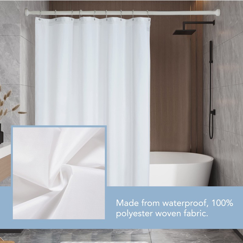 - Maximum Protection: Keep your bathroom floors dry and your shower curtains protected with our exclusive woven fabric shower liner. This waterproof liner is designed to give your shower or tub complete coverage within seconds.