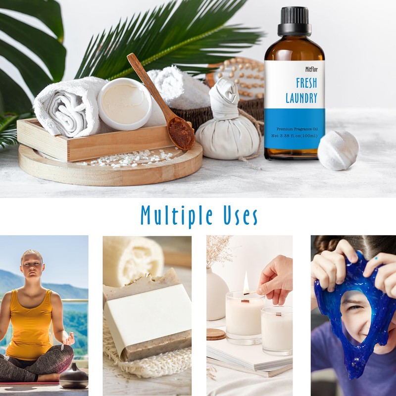 Fresh Laundry Fragrance Oil 3.38 OZ/100ML, MitFlor Single Scented Oil, Large Size Premium Grade Fragrance Oil for Soap & Candle Making, Aromatherapy Diffuser Oil, Fresh Lemony Scent for Home Fragrance