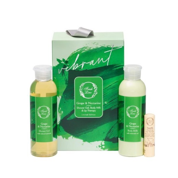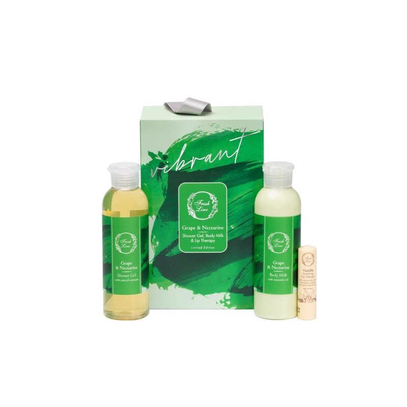 Fresh Line Xmas Set Grape & Nectarine Shower Gel, 200ml & Body Milk, 200ml & Lip Treatment, 5.4gr