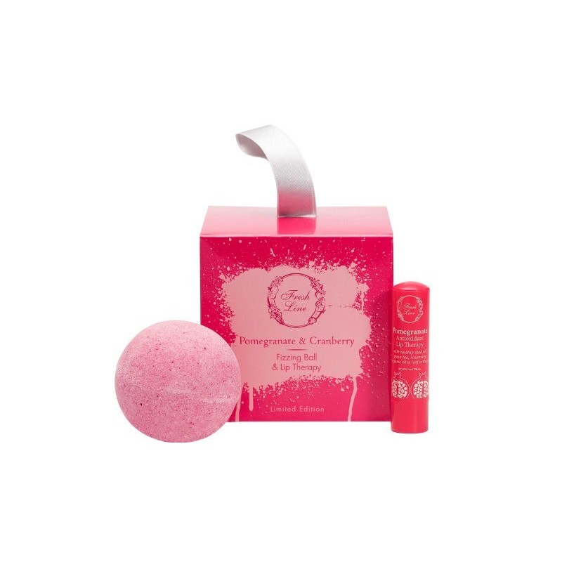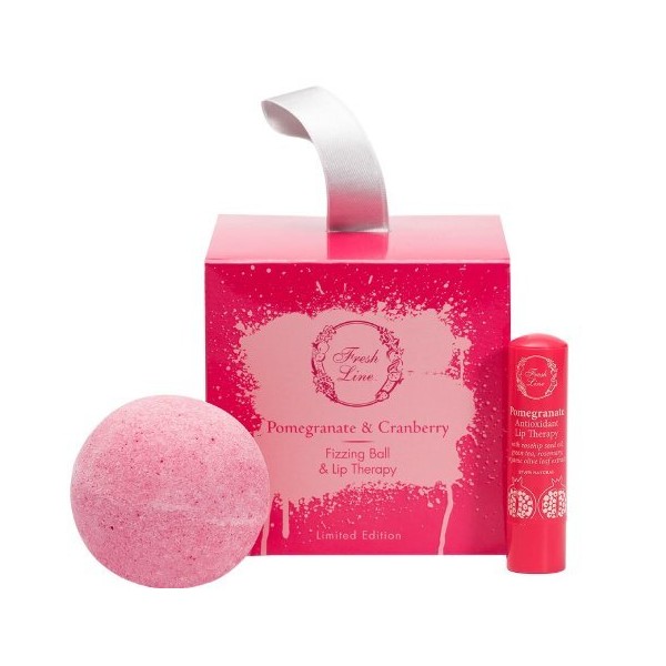 Fresh Line Xmas Set Pomegranate & Cranberry Fizzing Ball, 120gr & Lip Treatment, 5.4gr
