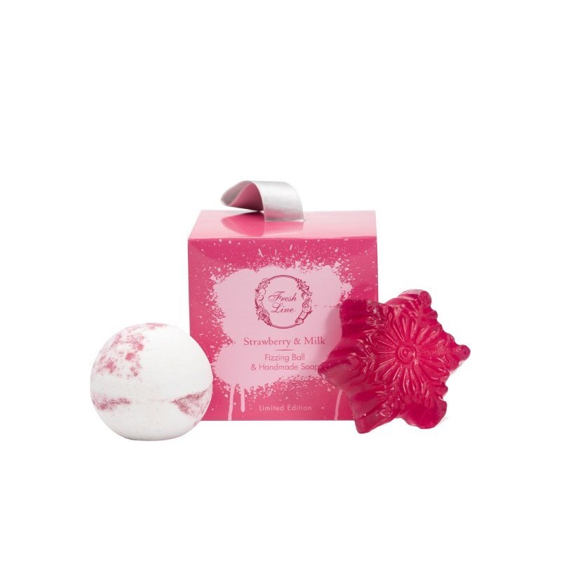 Fresh Line Xmas Set Strawberry & Milk Fizzing Ball, 120gr & Handmade Soap, 108gr