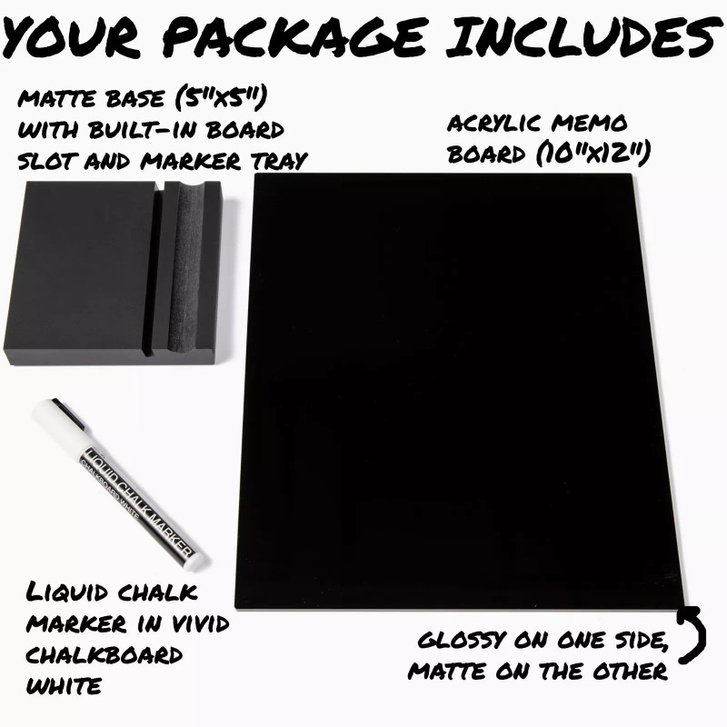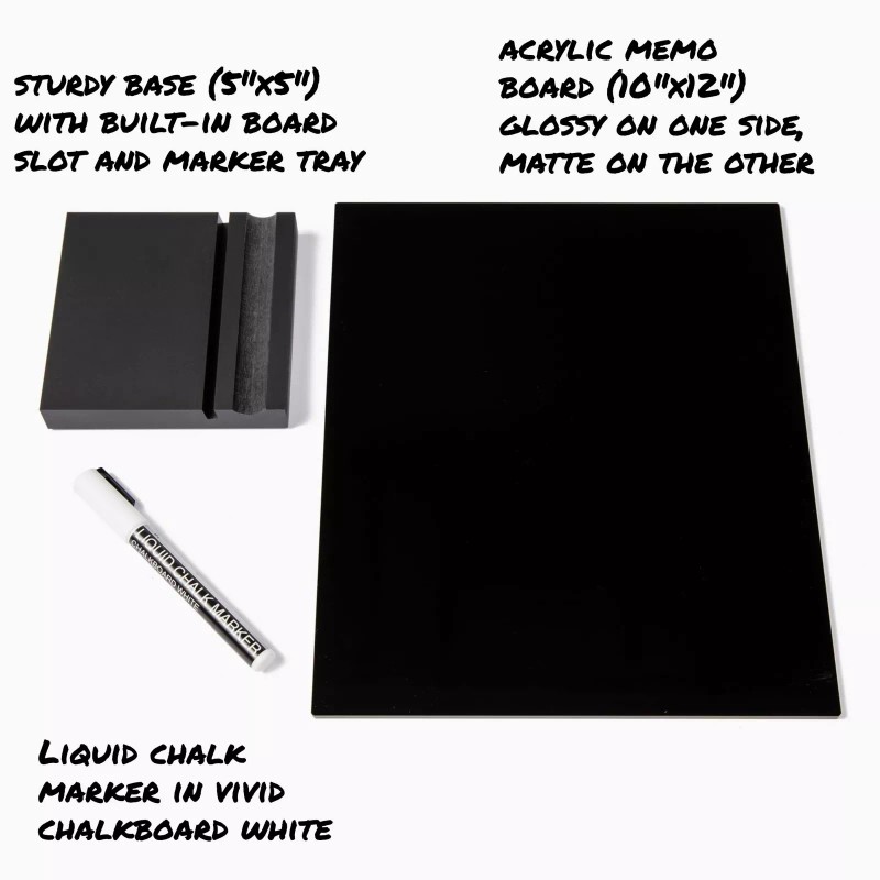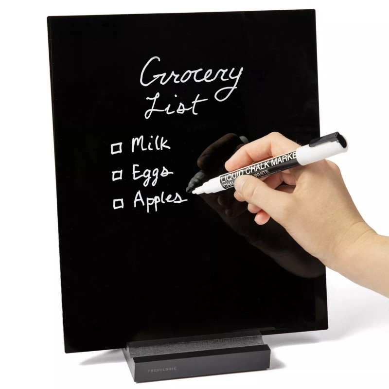 - WRITE, ERASE, REPEAT: Experience ultimate versatility with our easy-to-clean acrylic memo board. Shatter-resistant and safer than glass, it features smooth edges for safety. The odor-free, water-based chalk marker wipes away effortlessly with the included microfiber cloth, allowing you to reuse the board time and time again.
