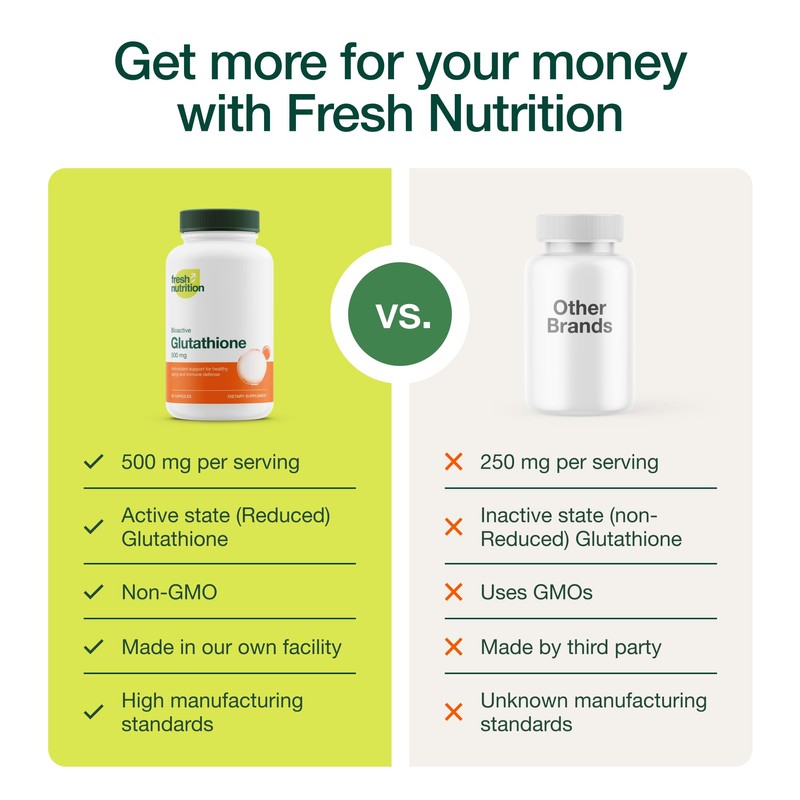 - Experience the assurance of Fresh Nutrition's glutathione, which undergoes DNA verification and third-party testing. Our glutathione is DNA verified for both potency and purity, allowing for precise dosing and a guarantee of quality without making specific health claims. Your satisfaction is our priority, and if you're not happy, we offer a money-back guarantee!