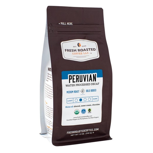 Fresh Roasted Coffee, Fair Trade Organic Peruvian Water-Processed Decaf, 12 o...