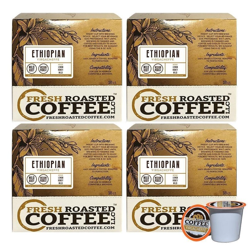 Fresh Roasted Coffee LLC, Ethiopian Yirgacheffe Coffee Pods, Medium Roast, 72 Count