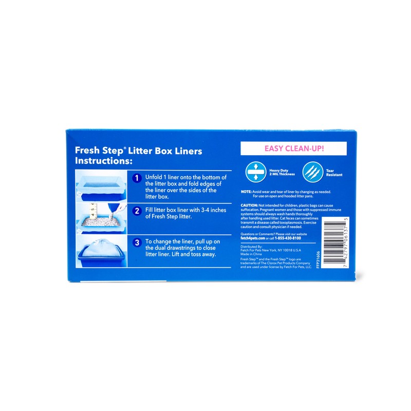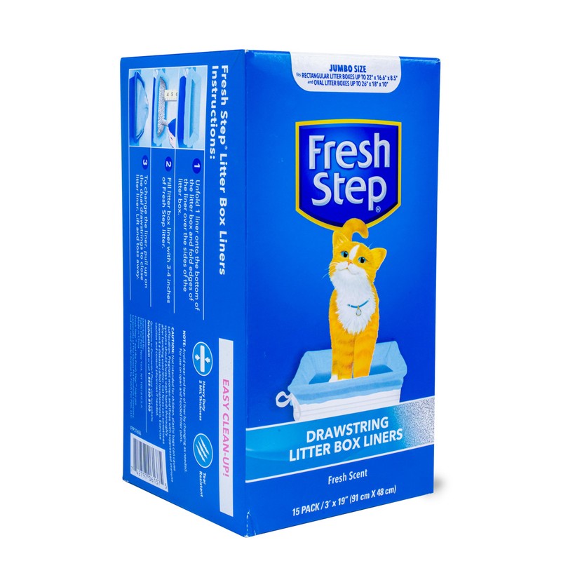 - FITS MOST LARGE CAT LITTER BOXES - These Fresh Step jumbo litter box liners will fit most large litter pans and can conform to rectangular (up to 22” x 16.6” x 8.5”) or oval shaped (up to 26” x 18” x 10”) boxes, as well as covered or open boxes.