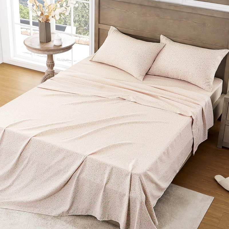 FreshCulture Floral Bed Sheets - Ultra Soft King Size Sheets Set - Brushed Microfiber Pink Floral Sheets - Deep Pockets - Easy Care - Hotel Luxury 4 Piece Flower Printed Sheets King, Calico