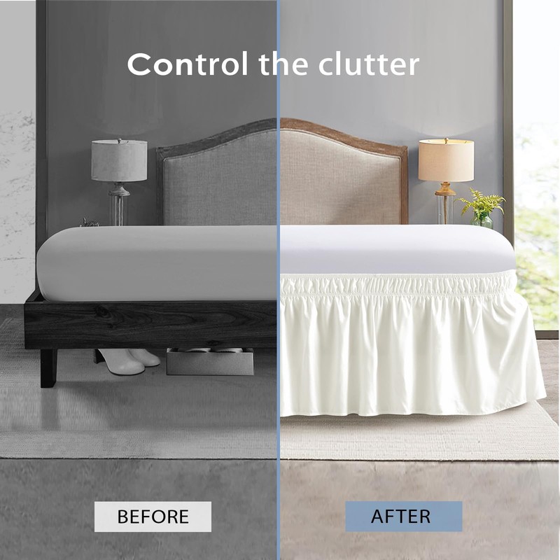 FreshCulture Queen Bed Skirt, Elastic Wrap Around Bed Skirt Queen Size, Bed Skirts for Adjustable Bed, Easy Fit with 18 Inch Drop Length, Hotel Quality Dust Ruffle for Queen Bed (Ivory)