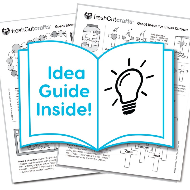 - CRAFT, CREATE, AND ENJOY: Unleash your creativity with 100 Cross Cutouts, including 20 Large (5.5 in x 8 in) and 80 Small (2.5 in x 3.75 in) crosses, all made from durable, US-made card stock. The set comes with an IDEA GUIDE featuring 12 inspiring ways to use these crosses in Bible crafts, Sunday School, classroom decor, and more. Suitable for personalized projects, faith-based activities, and DIY art kits for kids, teens, and adults.