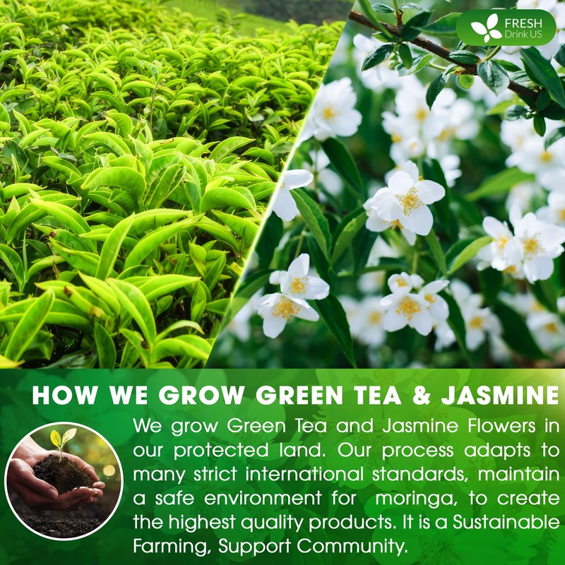 - ☘️ A SUSTAINABLE FARMING TO SUPPORT COMMUNITY: Our experienced farmers adopt methods that minimize the environmental impact of agriculture. We follow strict international standards with No Pesticides or Herbicides used on the Leaves. By consuming these Jasmine Green tea bags, you are contributing to the long-term well-being of both people and the planet.