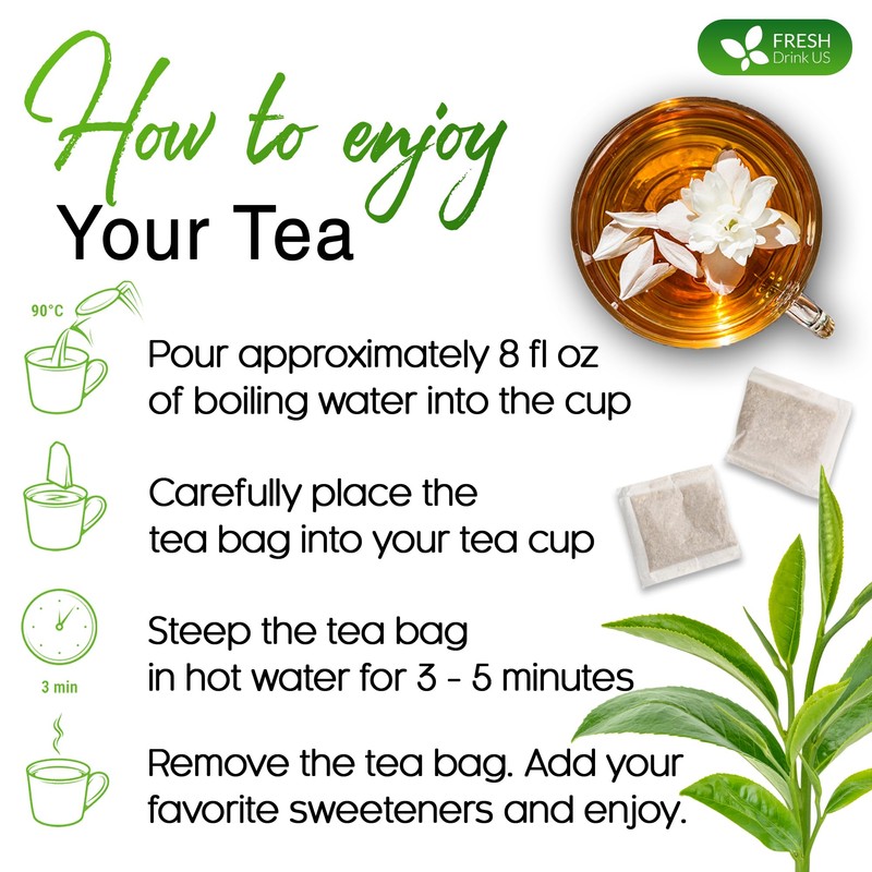 - ☘️ CONVENIENCE & ENJOYMENT: Jasmine Green tea bags are perfect for busy lifestyles. Whether you're at home, at work, or traveling, you can easily enjoy the benefits and flavors of Jasmine Green tea without the need for loose herbs or complicated brewing methods. It is often sweetened with sugar, or other sweeteners like Stevia leaves.