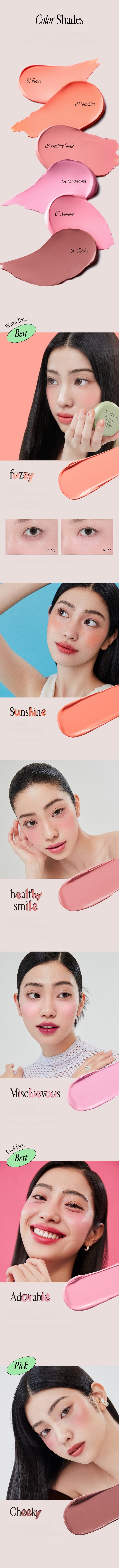 freshian Egg Like Cream Blush that provides a pop of color for a naturally sun-kissed look. Available in 6 easily blendable shades. This hybrid texture has only benefits of cream and powder formulas, and seamlessly lays without settling into lines. Transforming from soft cream to powdery texture, the blush lightly blends and smooths skin texture creating the lit-from-within radiance.