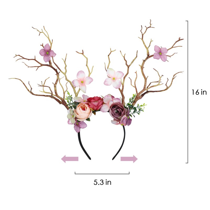- Fairy Antlers CrownThe antler garland headband combines exquisite fabric leaves and flowers, satin and unique Christmas antlers. It is light and comfortable to wear, which can add a strong atmosphere to the Christmas party and make you look more beautiful and lovely.