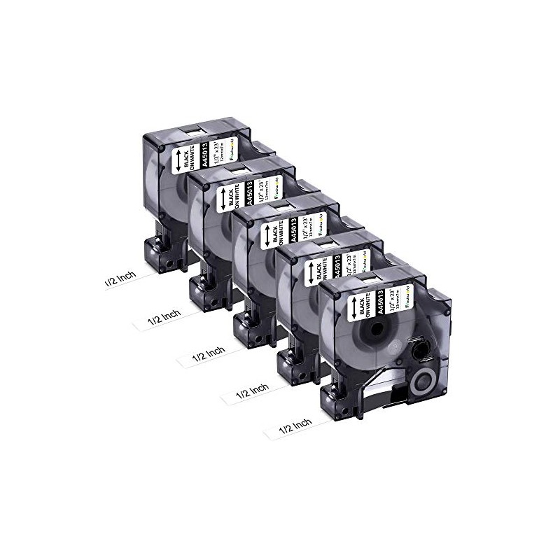 • Package Included: 5 Pack Compatible Dymo d1 Label Tape Dymo 45013 S0720530, Black on White, 12mm x 7m(1/2Inch x 23Ft)