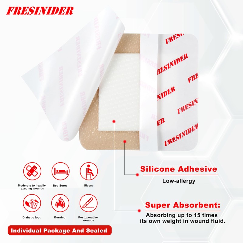 FRESINIDER Silicone Foam Dressing with Adhesive Border – Wound Dressing Banda...