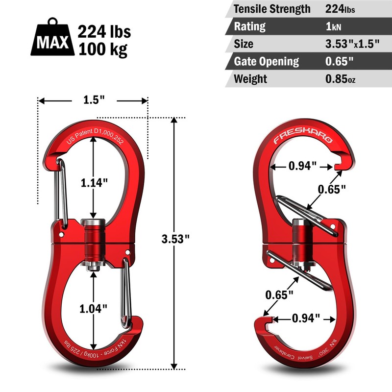- 【VERSATILE UTILITY】- With the twist-free innovation, this small carabiner’s function is doubled, it is perfect for keys, small tools, water bottle or lightweight items, Hang birdfeeders, camping gear, cooking pans, golf pouch bag, outdoor lights or everyday essentials with ease