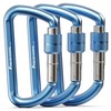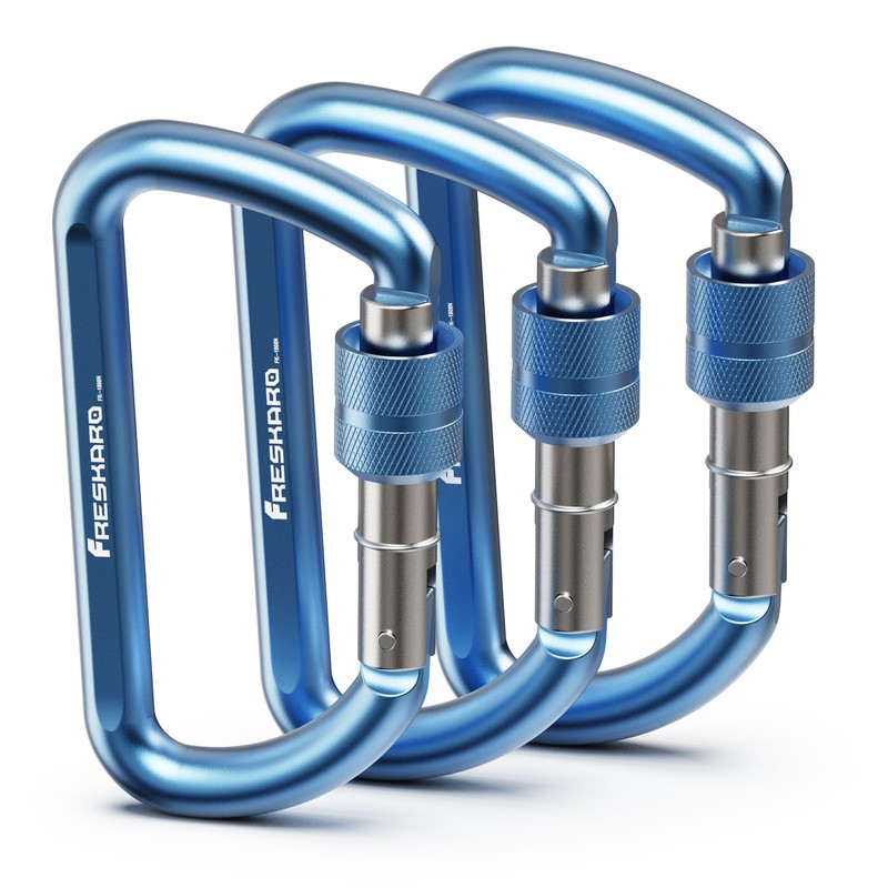FresKaro Carabiner Clip Heavy Duty, Strong 12kN Screw-gate Aluminum Carabina, Locking Karabiner Hooks, 3 Inch, Lightweight, Lockable for Dog Lead, Hammocks, Swing, Camping, Key, D-Shaped, 3Pack Blue
