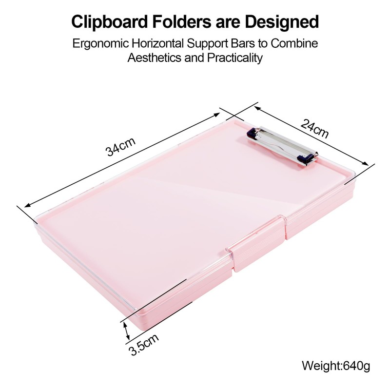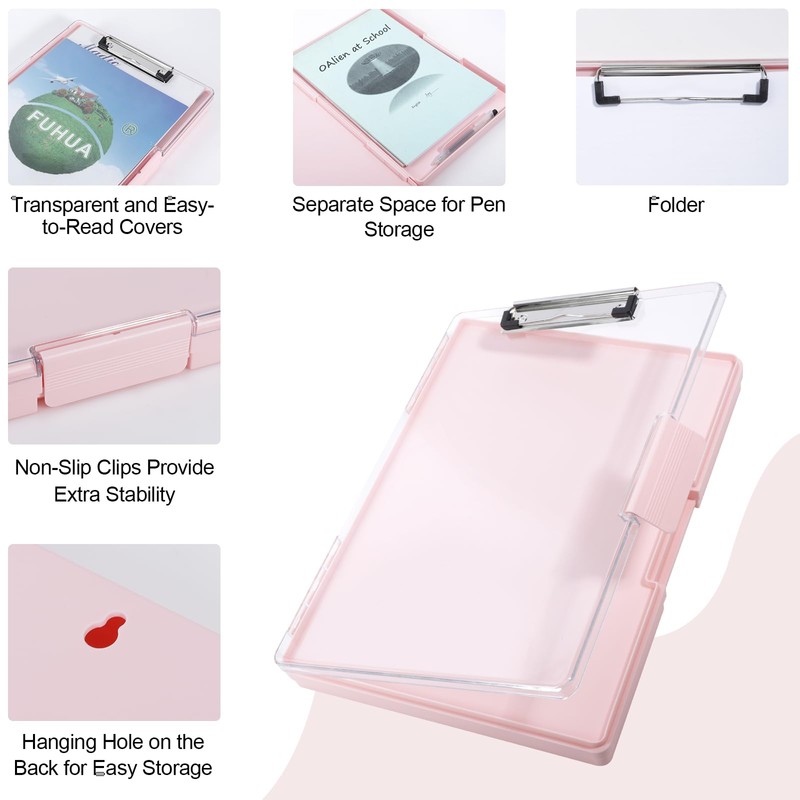 FRETONBA A4 Clipboard with Storage Compartment, Pink Plastic Clipboard, Lightweight Clipboard, Portable Writing Clipboard with Compartment, for School/Industry/Office