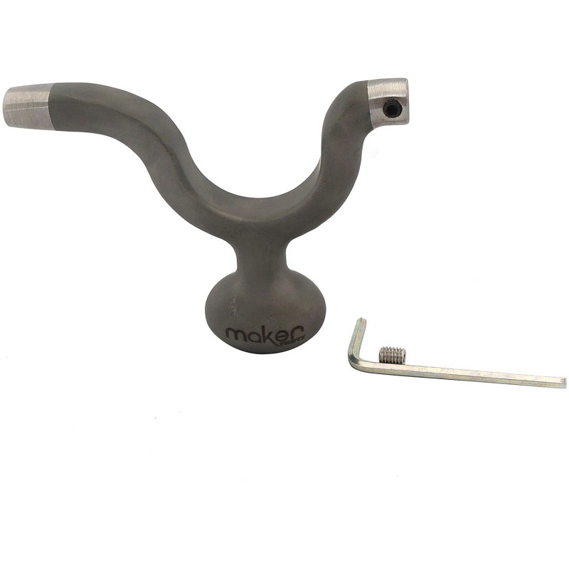 The RH Holder holds the same ends as the MKR-7 Hammer and is struck with a heavy chasing hammer or ballpein hammer. The RH Holder is designed to reach inside a bracelet or small bottle to snarl or stretch the metal from the inside while supported in pitch. This makes it possible to avoid the kinking that happens after a bracelet is chased flat and then curved into a round or oval shape. The curved insert ends form delicate flutes or raised areas from the inside. A knob on the side of the tool makes it easy to grasp while the holder is being guided.Note: It is recommended to use a parting agent on the metal before it comes in contact with pitch .