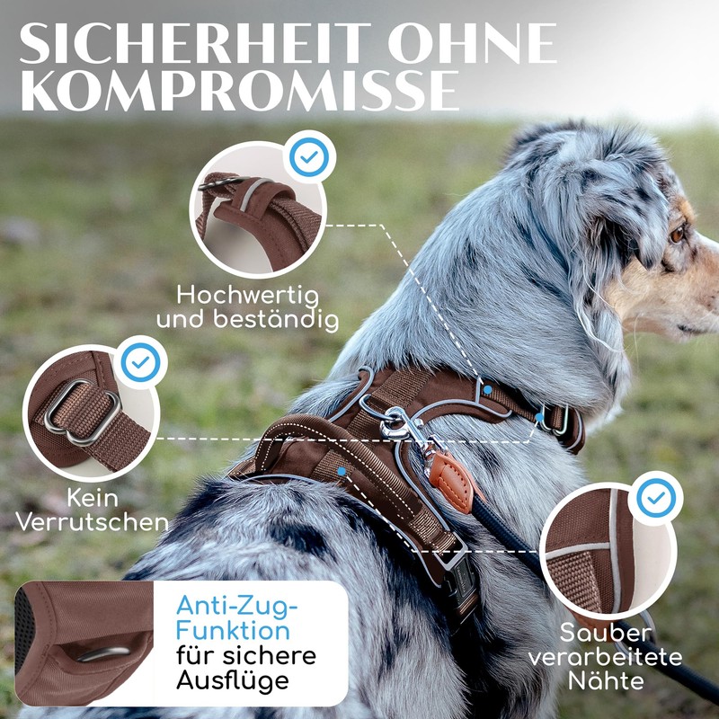 FREUDENTIER Dog Harness with Handle, Breathable Padded - Bomb-proof Fit & Maximum Safety - Anti-Pull Dog Harness for Small, Medium & Large Dogs - Dog Harness (Brown, XL)