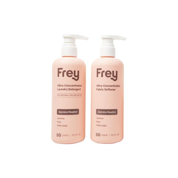 FREY Full Wash Laundry Care Bundle - Concentrated Liquid Laundry Detergent & Fabric Softener (Jasmine Meadow)