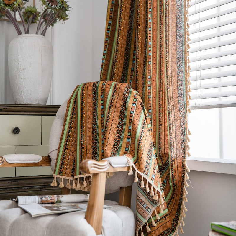 We recommend ordering the curtain width, which is 1.5 to 2.6 times the width of the curtain rod - Exclusive design: this classic yellow colourful Bohemian curtain with beige tassels and rich boho vertical stripes pattern. Window curtain in vintage style of the farmhouse. They definitely increase the charm of your room, so that your room looks romantic, cosy and free. People feel comfortable thanks to the curtains with the sunlight and the breeze, reducing the instant pressure and relaxing people.