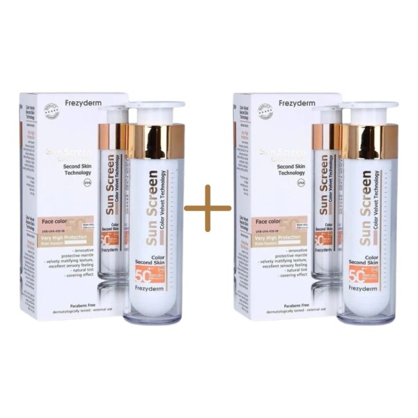 Frezyderm Sun Screen Velvet Color Face Spf 50+ 50ml Pack 2