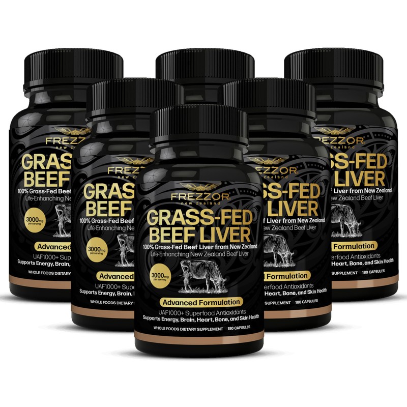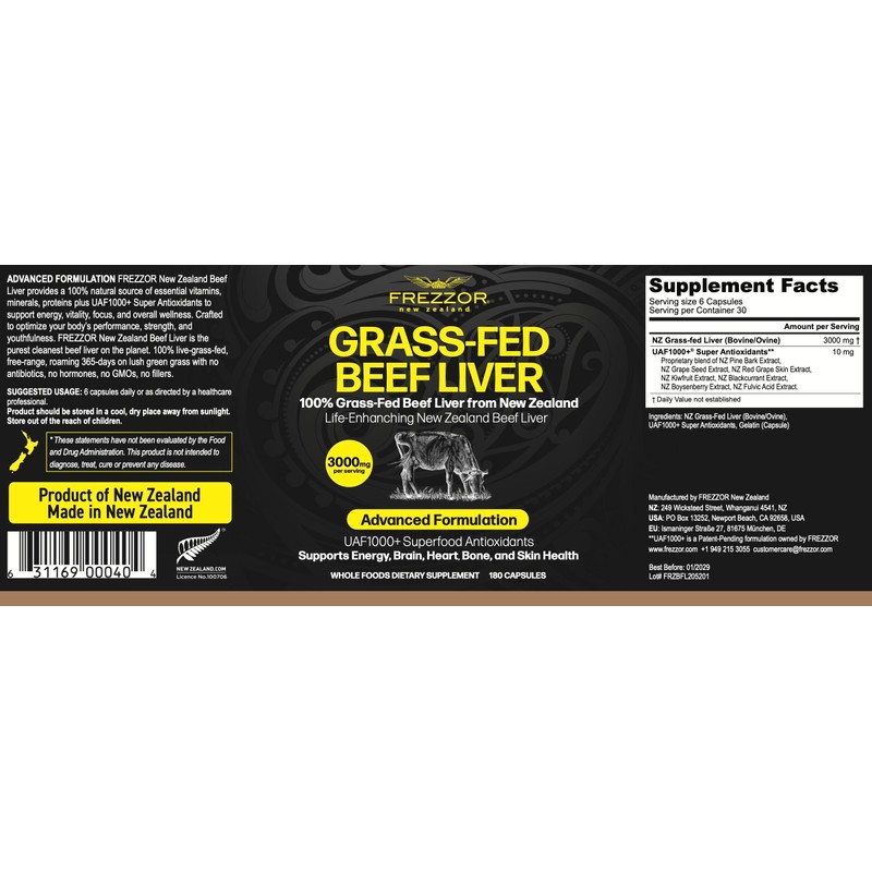 FREZZOR New Zealand 100% Live-Grass-Fed Beef Liver 1080 Capsules, Supports Energy Production, Detoxification, Digestion, Immunity and Full Body Wellness, Non-GMO, 3000mg