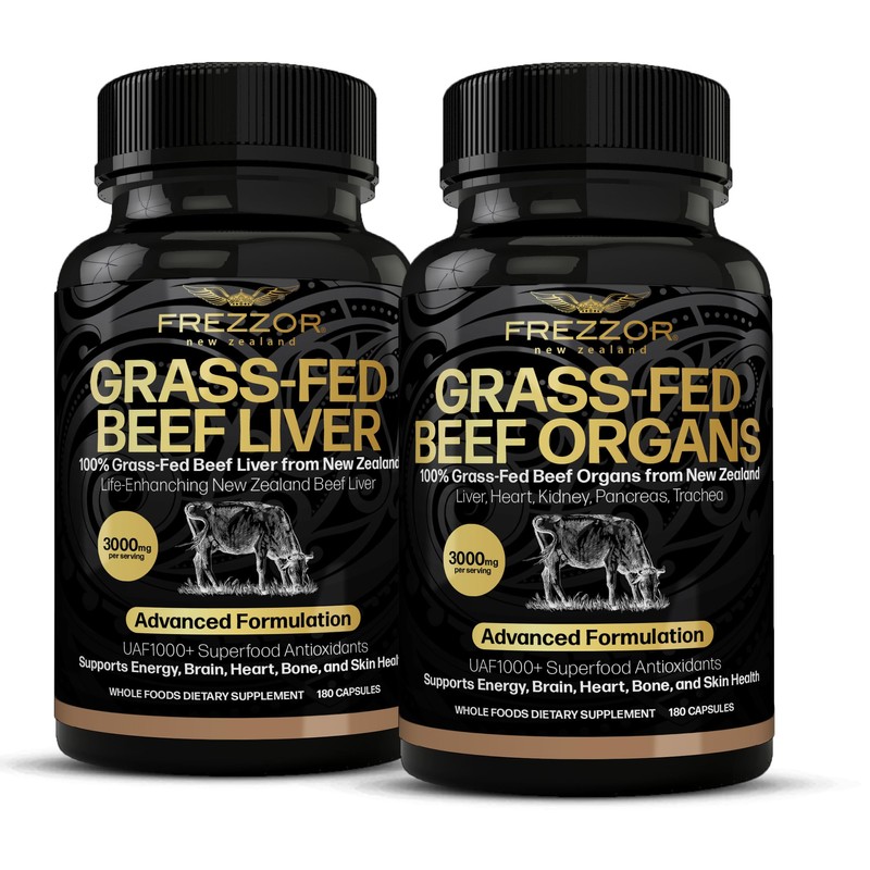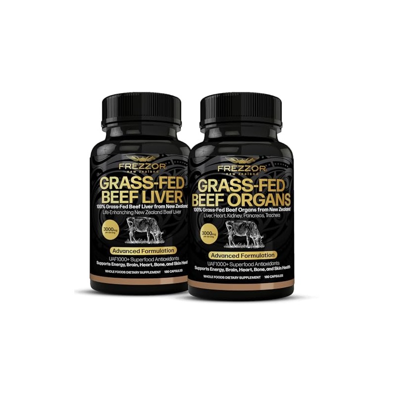 FREZZOR New Zealand 100% Live-Grass-Fed Beef Liver & Organs Combo Pack, Supports Whole Body Wellness and Energy with Proprietary Blend of Liver, Heart, Kidney, Pancreas & Trachea, Non-GMO,360 Capsules