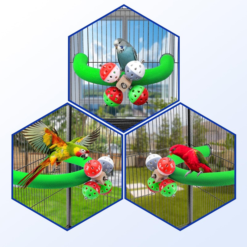 FrgKbTm U Shape Parrot Perch Stand Toy Bird Platform Sand Paw Grinding Clean Stick Exercise Conure Budgie Cockatiel Cage Accessories (Green-Rotate)