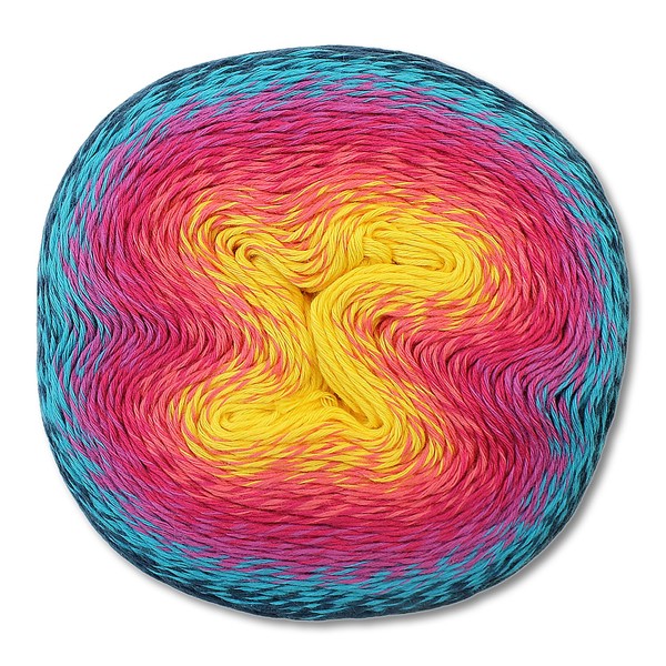 Unlike other gradient yarns, Whirl has a generous twist to allow for quick yarn processing and prevent splitting. Each colour change is particularly precisely knotted, which means that the knot in the stitch pattern is not noticeable.
