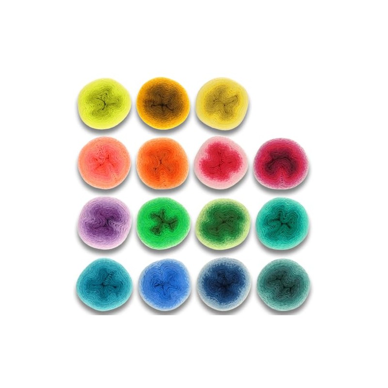- Colour gradient yarn with particularly precise knotting in the transitions