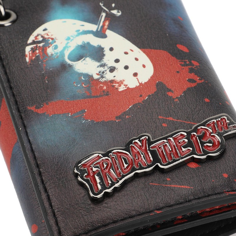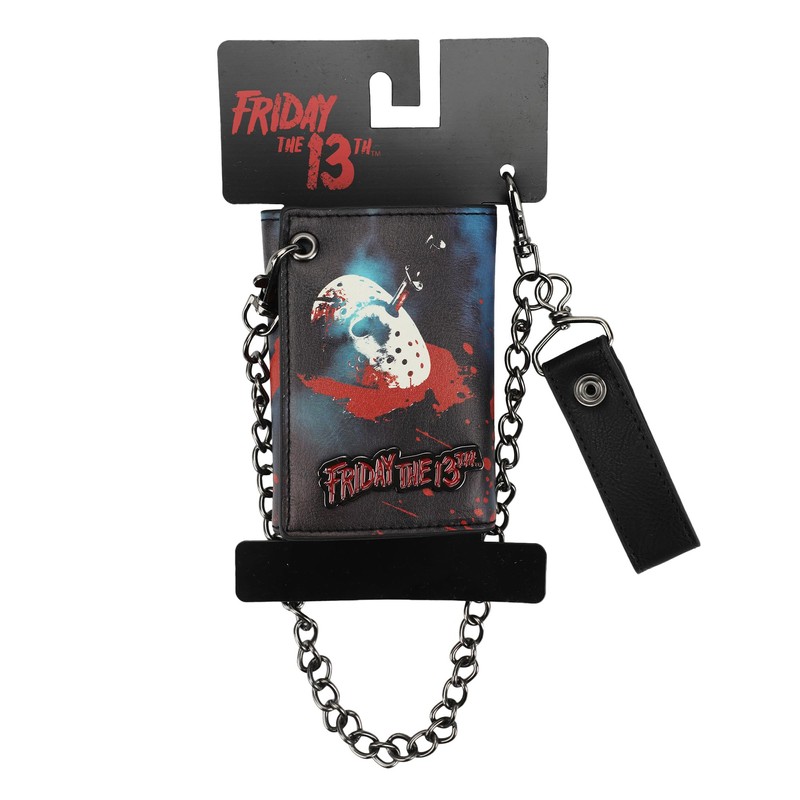 - Design: Keep your essentials secure with this Friday the 13th trifold wallet with chain, featuring a chilling Jason Voorhees design!