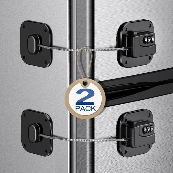 Fridge Refrigerator Lock with Combination, Heavy Duty Lock for Cabinet, Drawers, Closet, Safety Easy Install No Keys Needed (Black-2Pack)