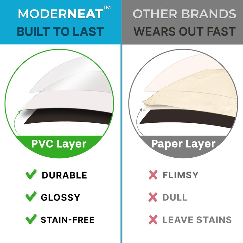 Made of 3 layers, the base is a flexible, strong magnet that attaches to any magnetic surface, while the top layer is a high quality laminate.