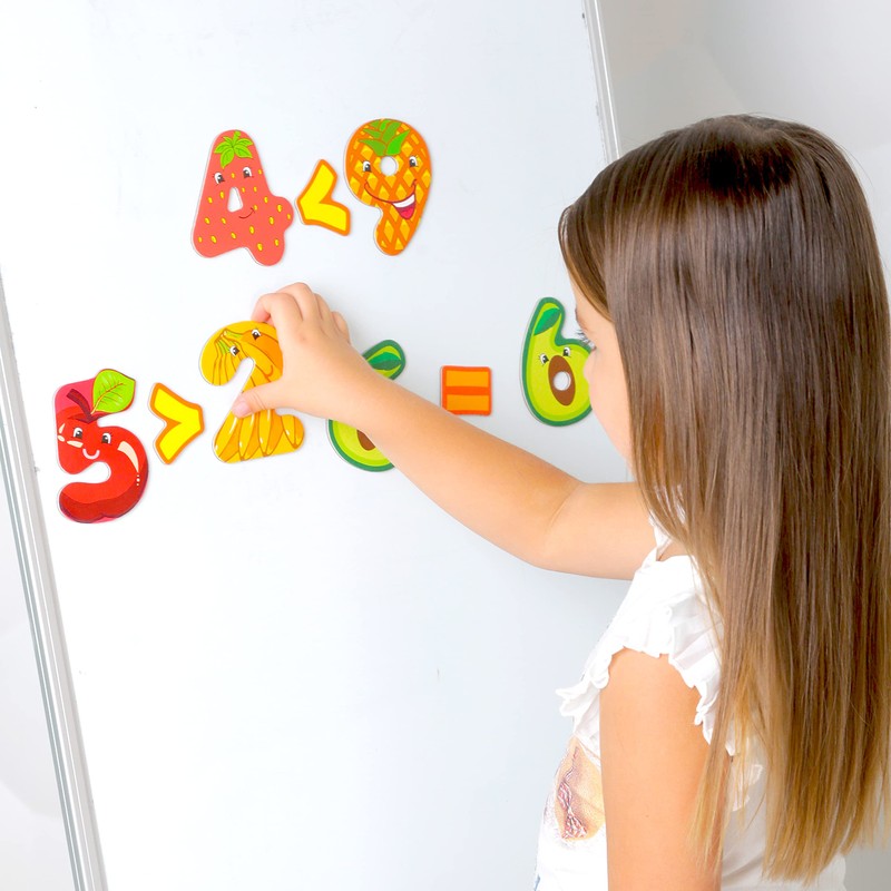 - Intelligent design: realistic large funny fridge magnets for children, so that the child can recognise magnetic numbers and set up simple mathematical equations for the child. Convenient box to play and store baby educational toy. High-quality materials - non-toxic, thick, cardboard. Fully magnetic base with strong magnet. Really large magnets, very convenient for children's hands.