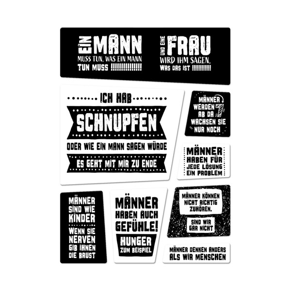 - Box contents: 1x fridge magnets set of 8 in black and white on the theme of men