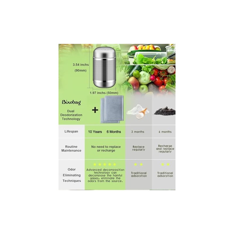 - 10-Year Lifespan: This household essential fridge deodorizer, paired with activated carbon deodorizing cotton, is crafted to last an impressive decade. It stands as the top choice for long-lasting odor removal and air purification.