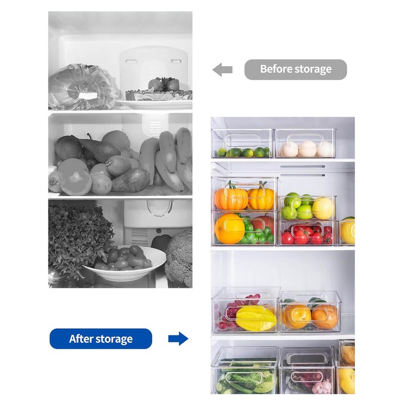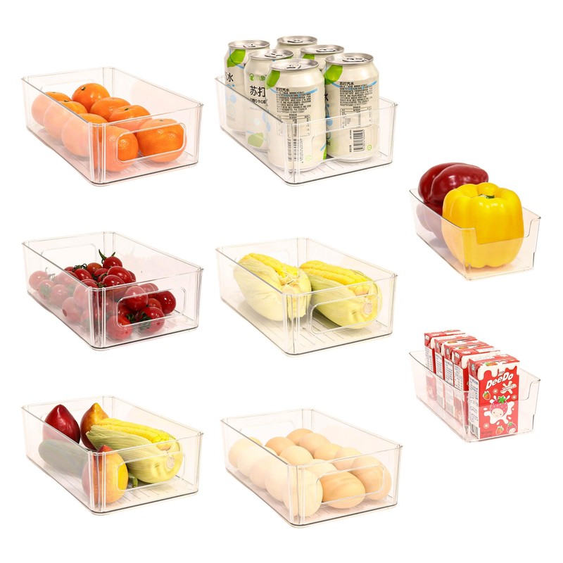 - Fridge organiser set of 8: With our Cupboard organiser, you can keep your fridge, freezer, worktops, kitchen cabinet or pantry neatly organised. The transparent design allows you to see what is in the storage boxes at a glance. It makes your life more convenient and saves time. Do not put in the dishwasher!