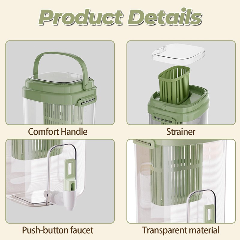 • Built-In Spigot for Effortless Pouring No more heavy lifting — just tap the spigot for smooth, one-handed water flow. Great for kids, seniors, and outdoor use. Perfect for tea, juice, and fruit water.