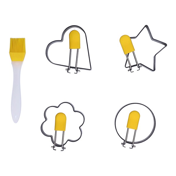 Fried Egg Rings Set with Folding Handle Silicone Brush Non Stick Stainless Steel Egg Shaper Kitchen Cookware