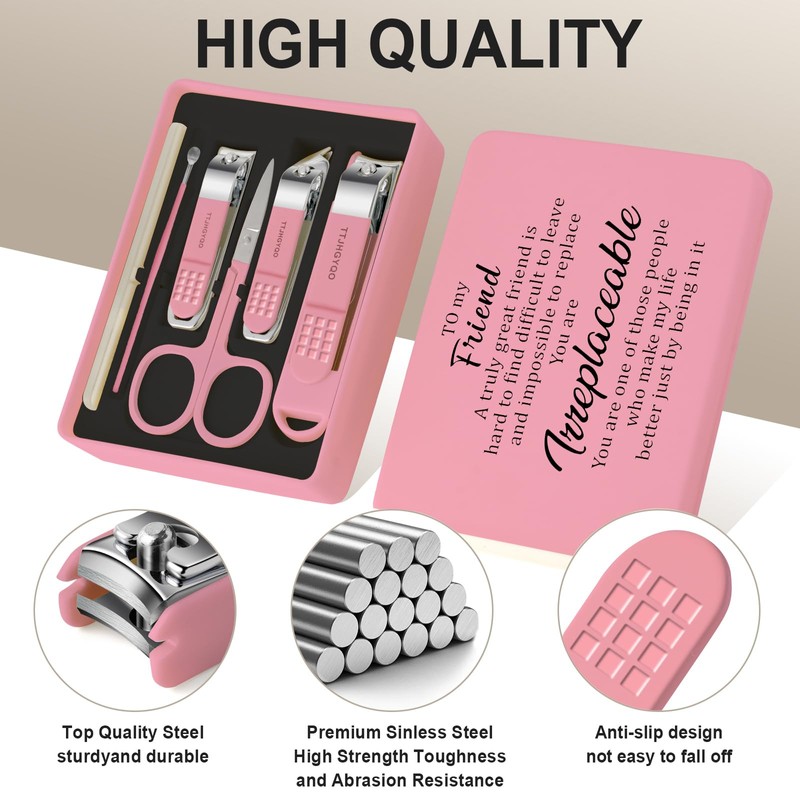 • 【 Splash prevention function 】This set of nail clippers is equipped with a catcher, which is designed to prevent splashing of water. Before cutting, simply push up on the gripper to store nail fragments.Additionally the top of the box of these nail clippers is engraved with a “TO my friend A truly great friend is hard to find difficult to leave and impossible to replace You are liieplaceble You are one of those people who make my life better just by being in it” It is very suitable for gift giving to coworker, boss, mentor, good friends, colleagues, etc. during important moments such as housewarming, retirement, new job, Thanksgiving, Christmas, etc.